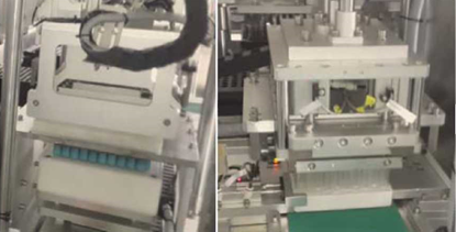 Горизонтальная запайка. Материал переходит в блок горизонтальной запайки, где формируется соответствующий след.