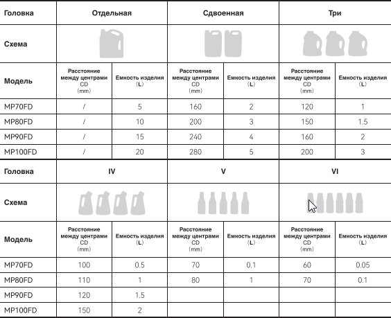 Представляется собой средняя и крупная станина, подходит для изготовления многокамерных или больших типов бутылок;